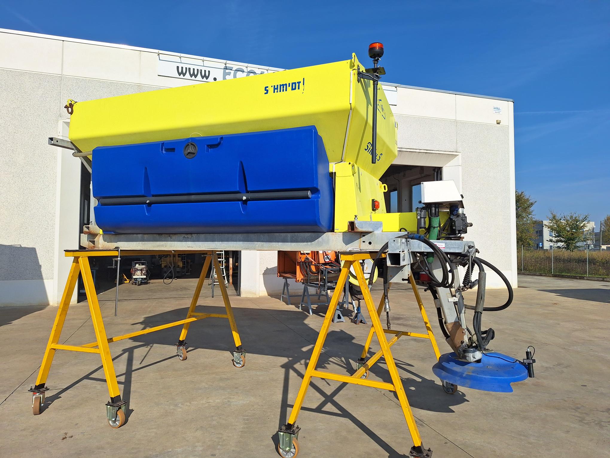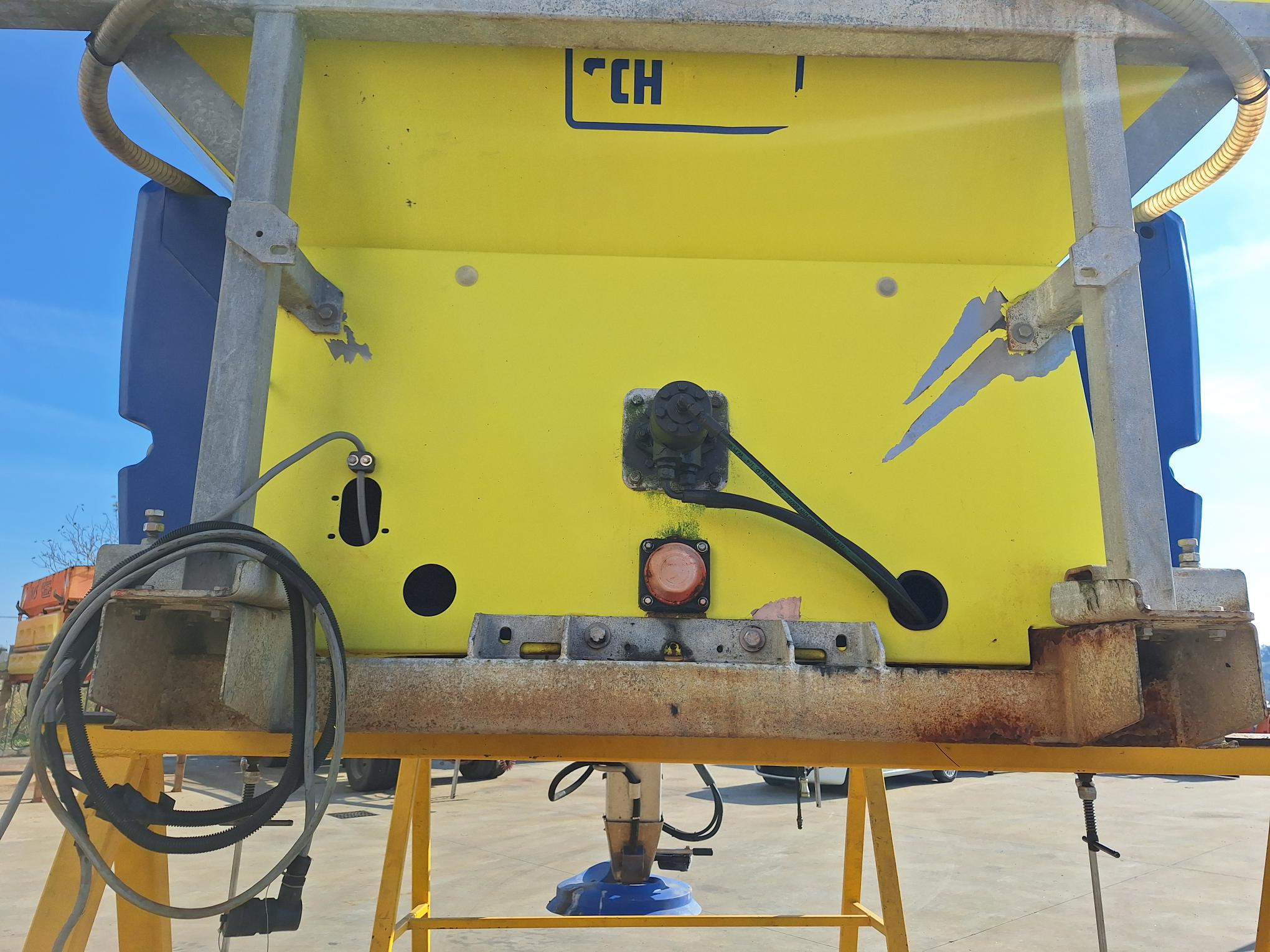 Spargisale Schmidt Stratos S50K-30 da 5 mc del 2007, tramoggia in Inox, alimentazione idraulica, coclea con frantumatore, griglia, scaletta, comando da cabina