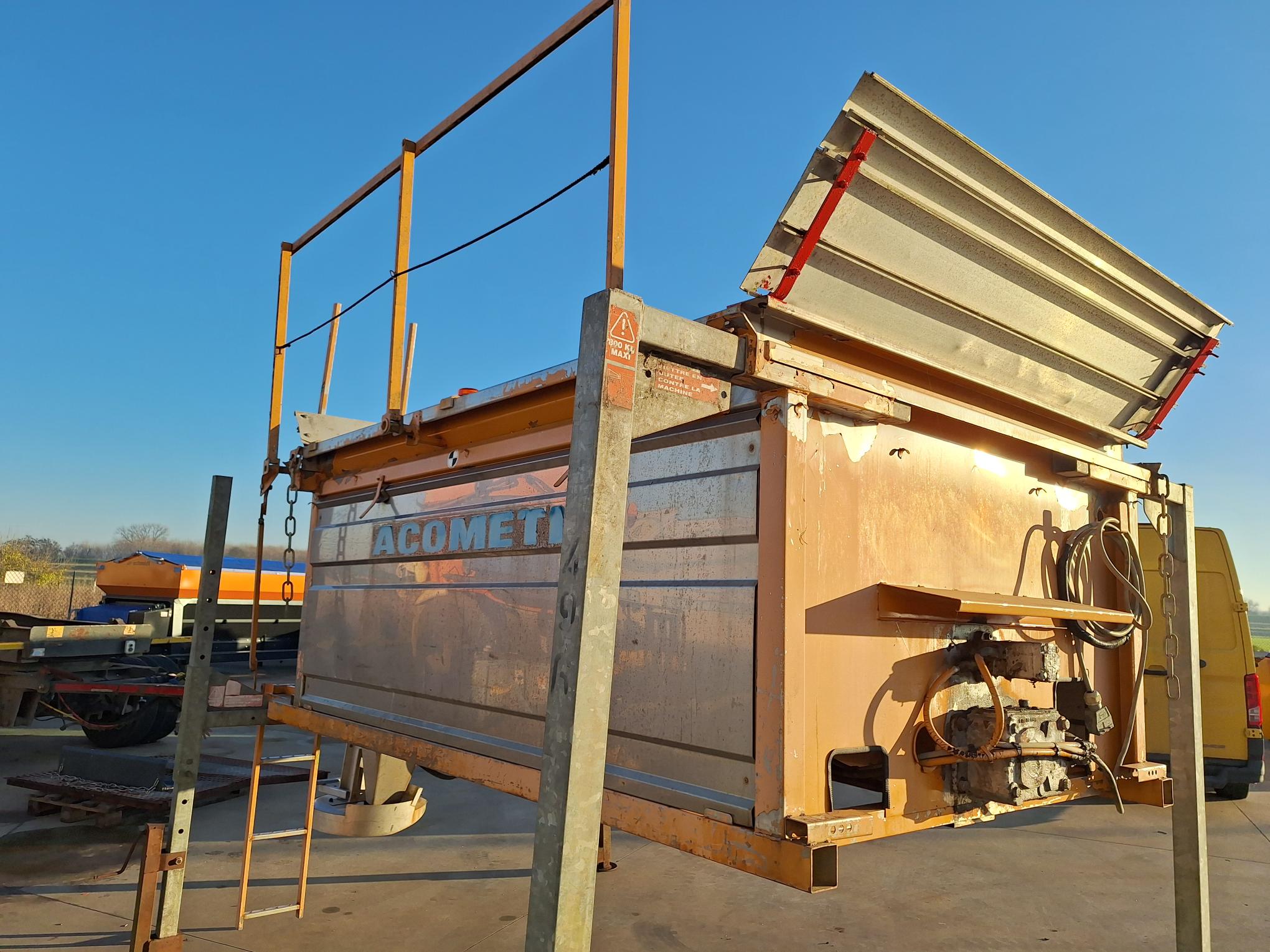 Acometis da 2,5 mc, matr. 7682, tutto inox, motore ausiliario a benzina nuovo, alimentazione a coclea + rullo frantumatore, griglia, convogliatori tramoggia, comando da cabina, faro e giro faro nuovi, scaletta + passerella, targhetta CE