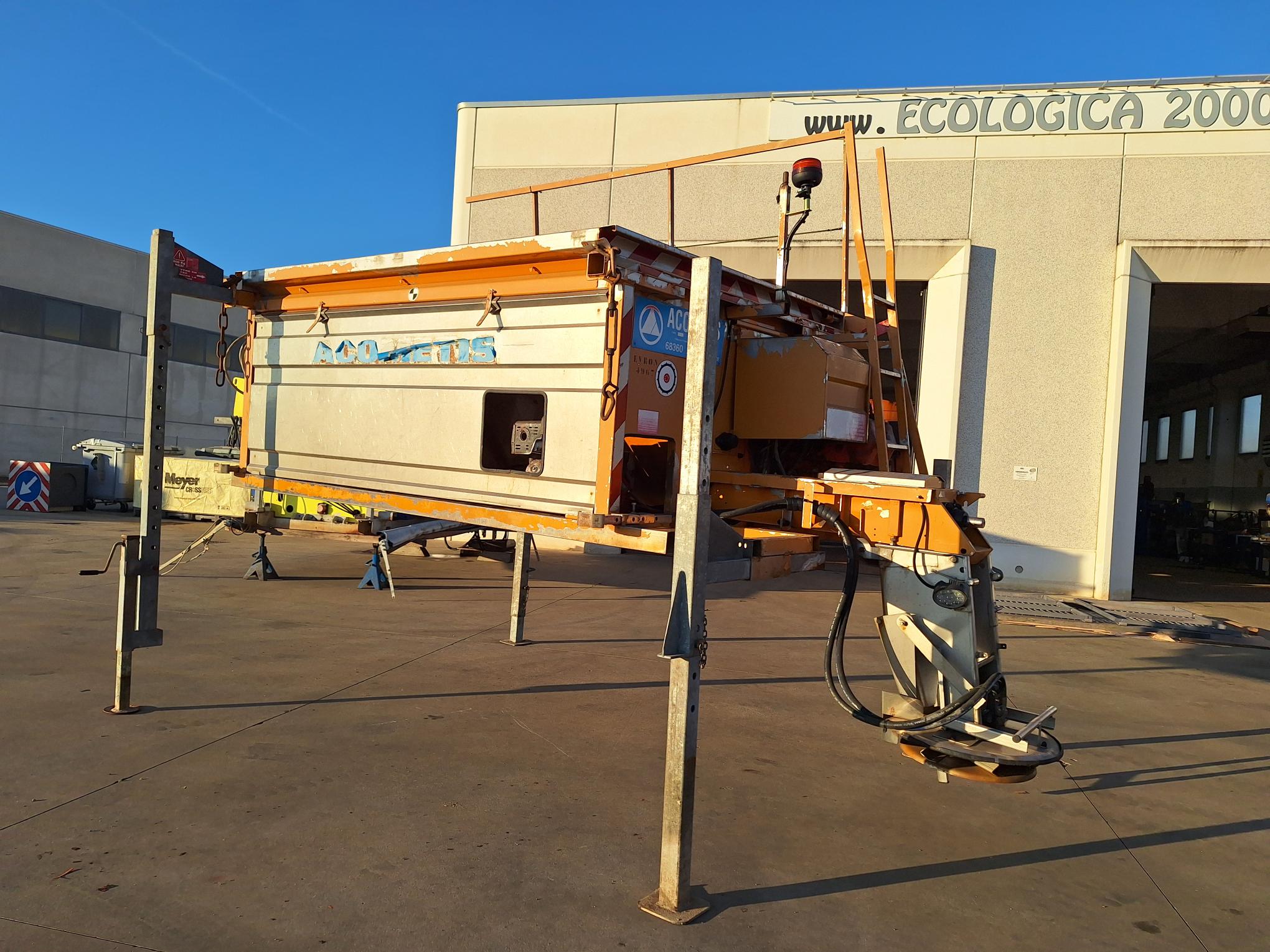 Acometis da 2,5 mc, matr. 8072, tutto inox, motore ausiliario a benzina, alimentazione a coclea, rullo frantumatore, griglia, comando da cabina, faro di lavoro, girofaro nuovo, scaletta + passerella, targhetta CE