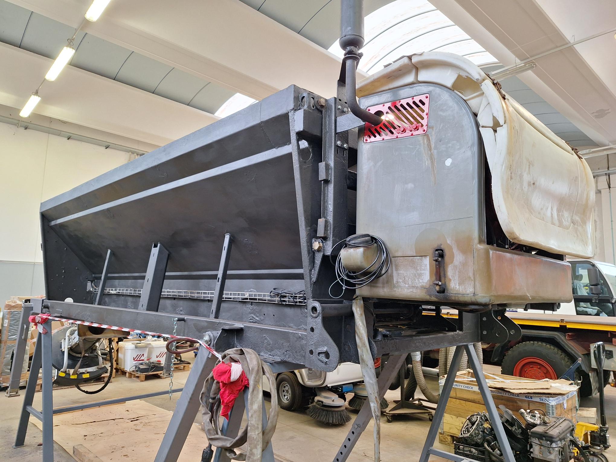 Spargisale Giletta UniQa UH4000 da 6 mc del 2011, motore diesel, alimentazione del sale a catena, frantumatore, griglia, comando da cabina, riverniciato con Hammerite, tagliando motore, trattamento interno tramoggia